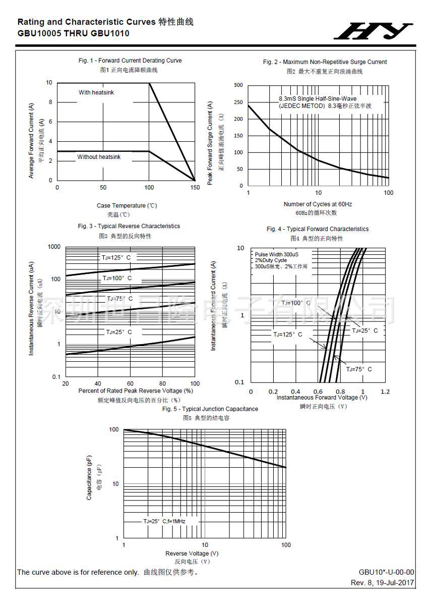 产品应用: GBU1010 是一款薄扁型桥堆,主要应用于各类电源,适配器,镇流器,电风扇,电视机,空调及各种小家电产品上。