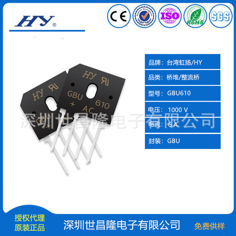 深圳世昌隆电子有限公司是台湾虹扬/HY 原厂正规授权代理商! 品牌简介 台湾HY/虹扬是全球大型分离式半导体元器件制造商之一,主要产品包含:1、二极管 (一般二极管,极快恢复二极管,肖特基Schottky,TVS管,齐纳二极管 Zener ) 2、桥堆 (贴片桥,圆桥,方桥,扁桥,三相桥) 购买须知