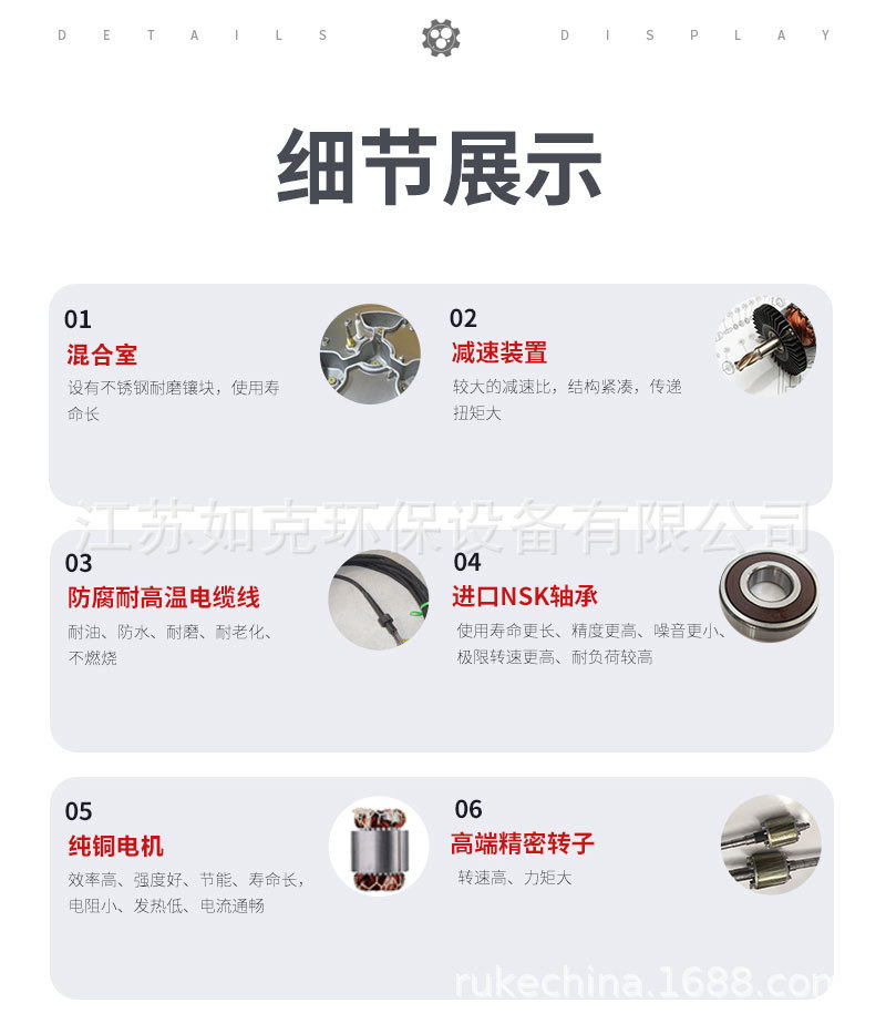 1.深水: 由于采用深水电机密封技术,使曝气池在垂直方向布置,池深可达 20m,这样可节约占地面积,减少空气污染;由于水深,空气在水中停留时间长,加入水下温度均衡,故氧转移率高。2.曝气: SBJ 产品由供气系统和高速搅拌机组成的曝气,实际充氧能力是通过进气与水的混合机能完成的,因此,只要控制好水气混合比和工作时间,就可达到所需的较好连续稳定的曝气性能;这使生化处理工艺的自动控制系统变得简单、可靠。实验证明,在SBJ工作的水面可见气泡密实均匀。由于叶轮在高速运动状态下形成的负压还增加了该机的自吸功能,从而提高了整机的动效率。3.搅拌: SBJ 产品作为池底曝气搅拌设备,它利用开放式的叶轮结构设计,无堵塞之忧,在完成高速曝气后可自动切换到低速状态作为搅拌混合设备,沿圆周出口处可保持3-5m/s的流速,通过池壁的反射在水下形成环流能有效地防止悬浮物的沉降。4.安装: SBJ 产品依靠自重定位,一体化的吊装设计无需任何辅助配件,布置灵活。在无需排水和不中断工艺运行的情况下可实现快速吊装。除了以上特点外,它还具有土建投资少、操作简单、运行维护费用低等优点;采用双重机械密封设计和多项电气保护功能,使用更安全、可靠