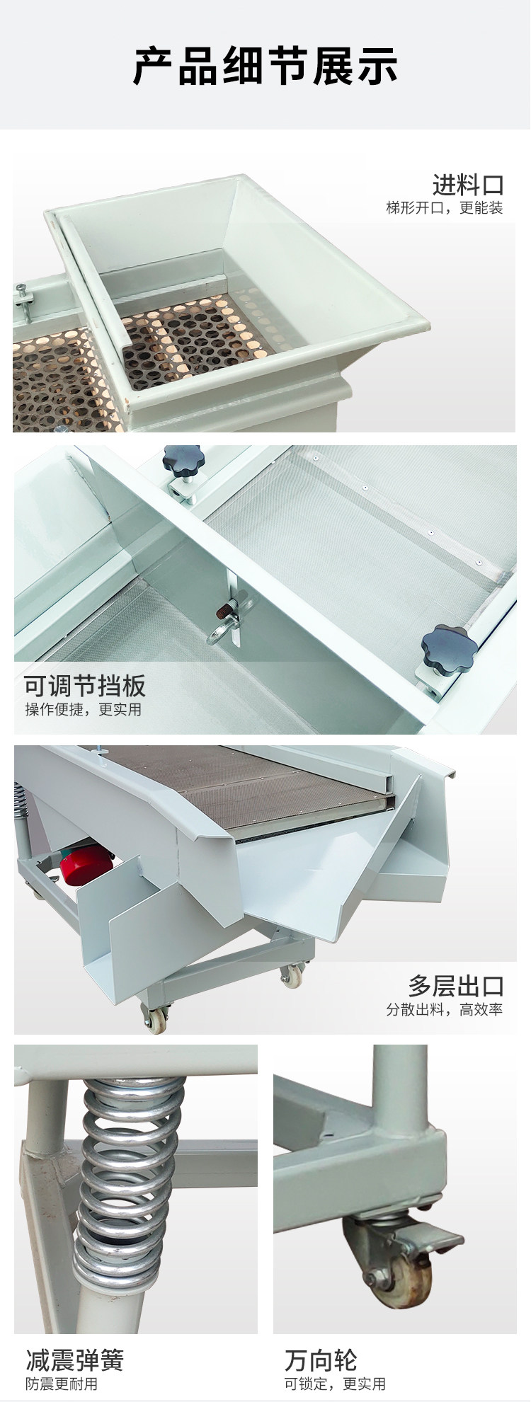 直线振动筛工作原理 电机:2*(0.4-0.75)网孔尺目:2-200