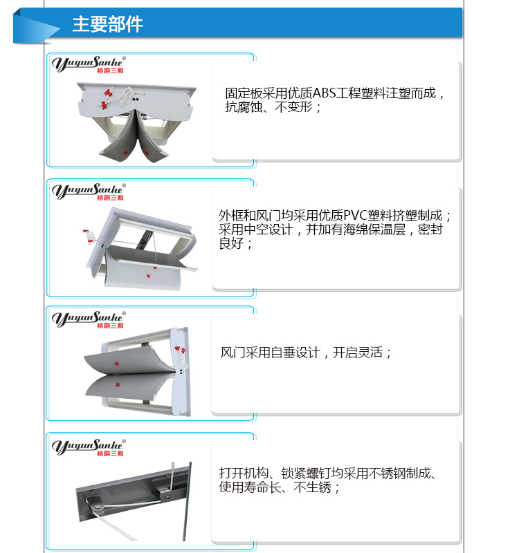 打开机构、锁紧螺钉均采用不锈钢制成、使用寿命长、不生锈;