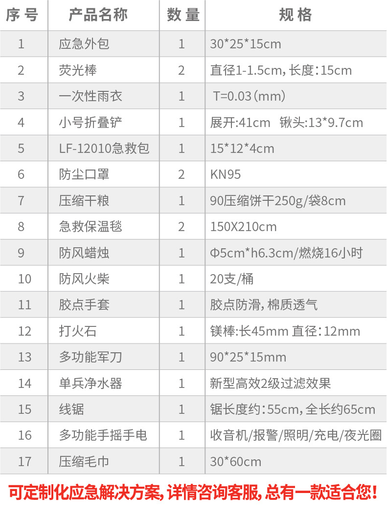 名称:防灾救生包 LF-16506 规格:30*25*15cm