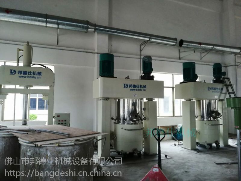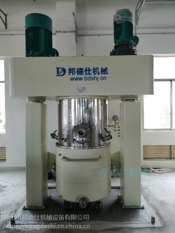 是一种集反应、混合、混炼、分散为一体的高效、多用途混合设备。双行星高速真空搅拌机适用于各行业的液-液、固-液、膏体-膏体、粉-膏、物料密度、比例悬殊、从低粘度到高粘度(150万Cps)的生产工艺中。适用于能源、电子电器、化学品、化妆品、日化品、食品等行业的应用。根据物料粘度的不同,设计不同的行星轮传动比,扭矩变化区间大,是胶黏剂、硅胶、锂电池浆料等行业搅拌混合产品;同时设备带刮壁刮底功能,清洗方便,配套独特的控制系统,操作安全便捷;设备可另选配挤出装置,实现搅拌、出料一体化作业。对于有温度要求的物料,可配套合适的模温机,独立操作,温度控制精度高。