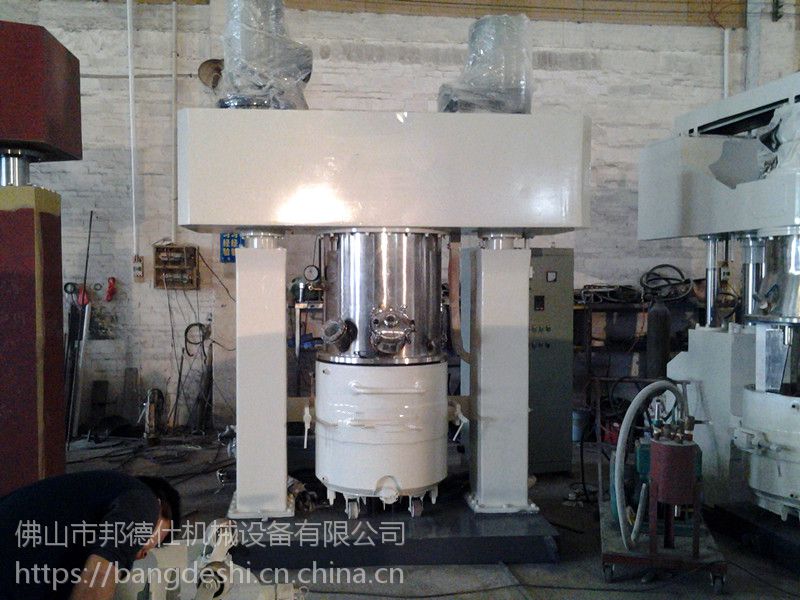 2.混合机高速分散部件与行星架一起公转,同时高速自转,使物料受到强烈的剪切与分散混合,其效果为普通混合机的几倍。分散部件分单分散轴和双分散轴,客户可根据需要选用。