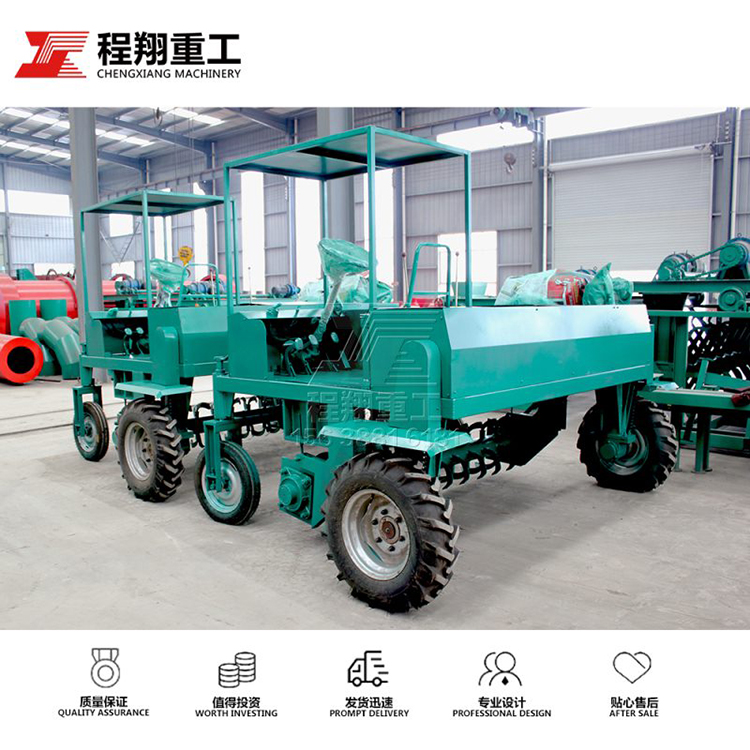 1)翻堆机行走原则上使用低速进行。但物料不同,含水量不同,驾驶员可凭翻堆实际状态选择合适速度,以达更好效能。启动后先在无负荷驻车状态下怠速运转3-5分钟,然后翻堆调好速度空转运行1分钟后,再前进进行翻堆作业。
