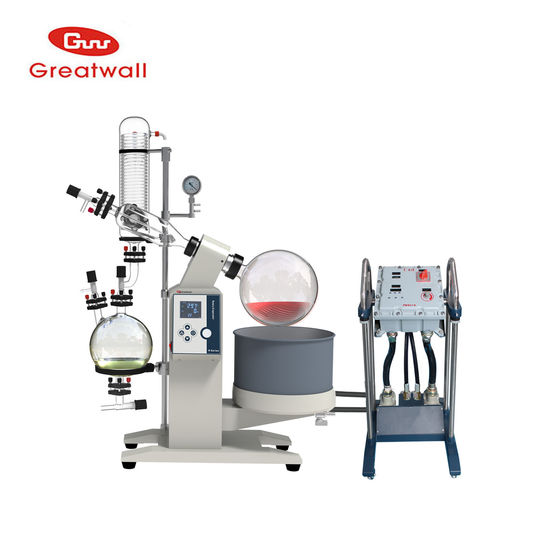 大容量、大口径旋转瓶,蒸发面积大;置于浴槽中,边旋转边加热,配用减压装置,使溶剂高效蒸发。可用于生物、医药、化工、食品等领域的中试。可与循环水式多用真空泵、隔膜真空泵、循环冷却器、恒温循环器、低温冷却液循环泵等组成配套装置。为满足爆炸性气体环境使用条件,公司特开发了由隔爆外壳“d”保护的旋转蒸仪。