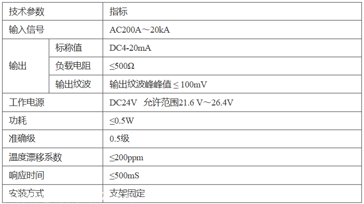 技术要求:输入电流AC1000A;输出DC4-20mA;
