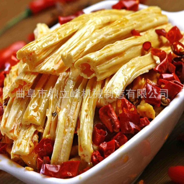 二者虽都叫“豆腐皮”,特色酒店腐竹油皮机,但形状、成分、口味、菜肴做法均有较大差别。