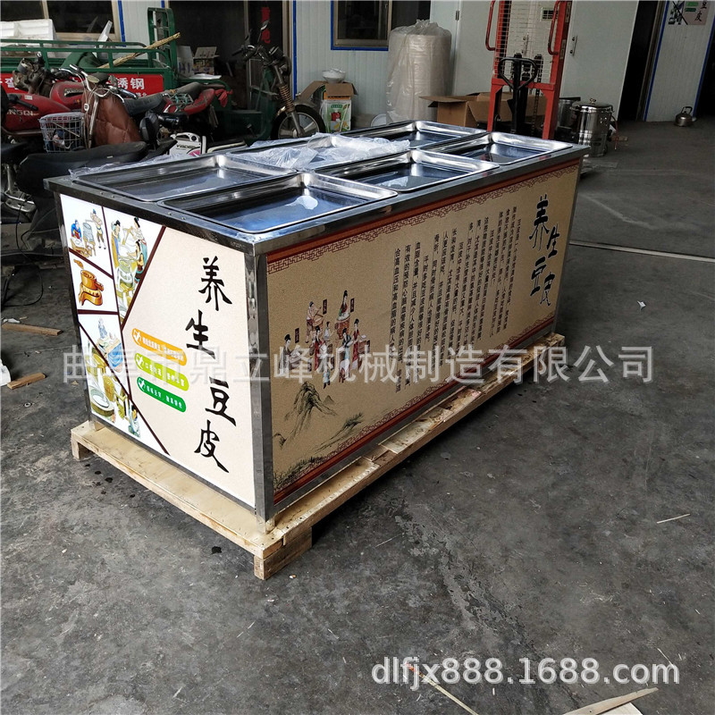 该机生产的手工鲜豆皮,原汁原味,不需任何防腐剂、添加剂,可现做现卖,全程透明操作、绿色环保、健康,让客人吃着放心,看着舒心。尤其是受到大、中、小型酒店、餐饮连锁店、特色农家乐、工厂、学校等的青睐。操作简单,易学易会,并且我们的机器都有视频教学提供。 油豆皮机需要配着磨浆机和煮浆的使用,我厂都有,并且磨浆机和豆皮机配着买价格上更优惠。