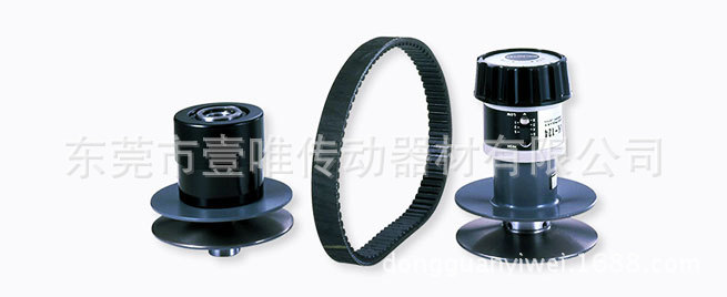 是通过使一个变速带轮的皮带节圆直径随另一个变速带轮的皮带节圆直径的变化而变化,在不改变轴间距离的前提下实现变速的组件。因为可以在不改变轴间距离的前提下变速,所以能够节省空间,安装方便,易于使用。可组合电动机、减速机,或内置电磁离合器·制动器。还易于维护,皮带式的传动效率良好,为节能作出了贡献。