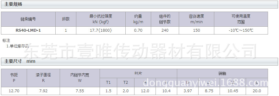 TSUBAKI免加油链条RS40-LMD-1 规格尺寸