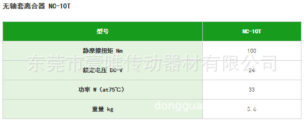 SINFONIA无轴套离合器 NC-10T规格参数: