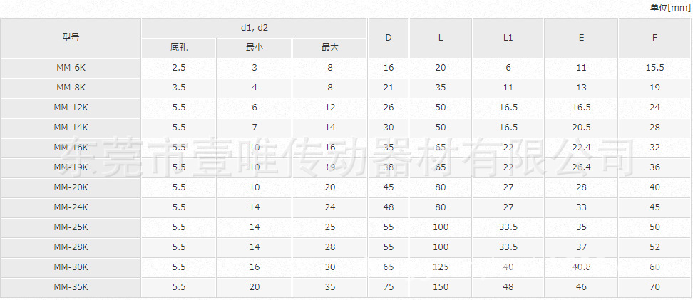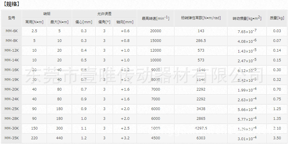 MM K系列规格:
