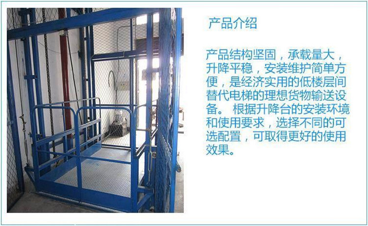 升降平台有剪叉升降平台和固定升降平台,固定升降平台包括导轨链条式升降平台和剪叉式固定升降平台;其结构不同,但核心都是载货的,固定剪叉升降平台用于建筑物层高间运送货物的,专用液压升降机。产品主要用各种工作层间货物上下运送;立体车库和地下车库层高间汽车举升等。产品液压系统设置防坠、超载安全保护装置,各楼层和升降台工作台面均可设置操作按钮,实现多点控制。产品结构坚固,承载量大,升降平稳,安装维护简单方便。