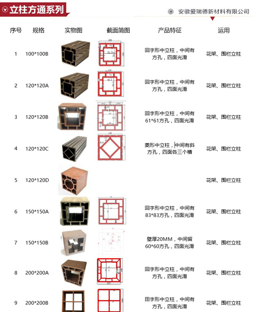 热卖塑木葡萄架立柱户外木塑廊架隔断墙立柱塑木围栏120*120