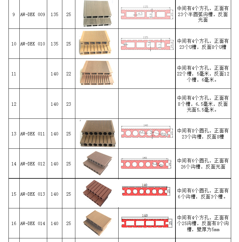 爱瑞德 木塑板材 135*25 方孔木塑地板 塑木地板 颜色长度定制