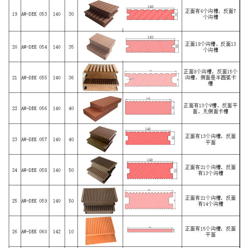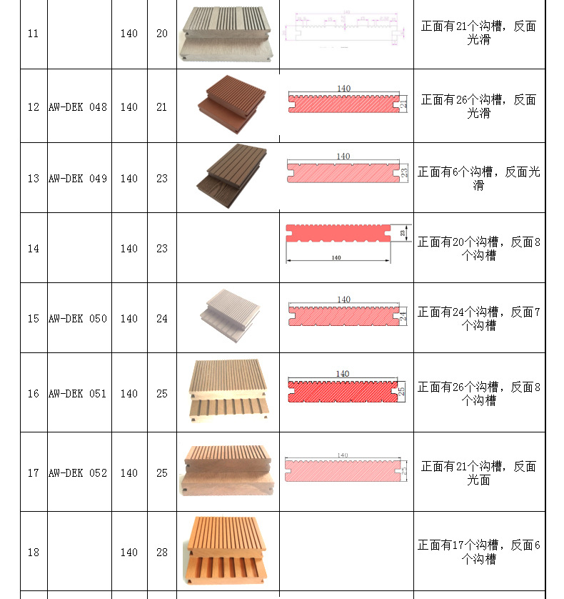 实心木塑地板140*24mm 塑木木屋凉亭走廊材料 户外塑木地板