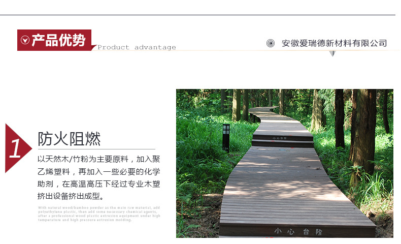 (1)防水、防潮。根本解决了木质产品对潮湿和多水环境中吸水受潮后容易腐烂、膨胀变形的问题,可以使用到传统木制品不能应用的环境中。