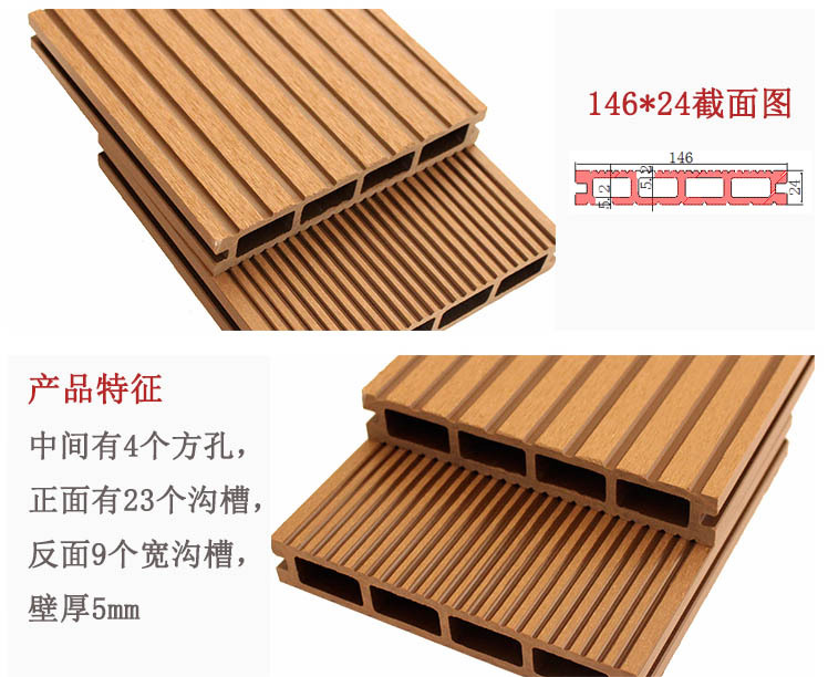 厂家直销 户外塑木地板 空心塑木 146*24 公园广场室外木塑地板
