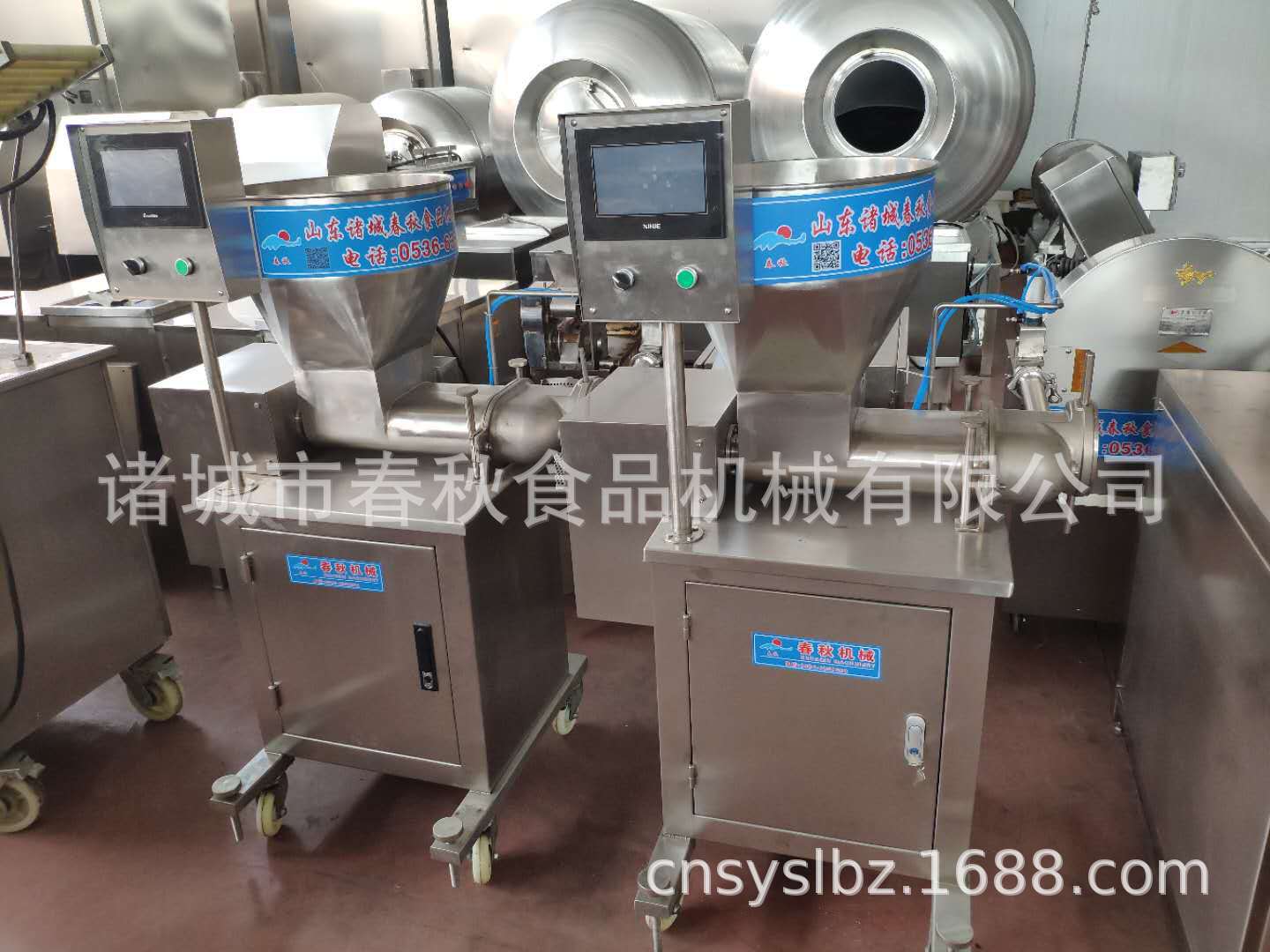 馄饨皮注馅机,水饺皮注馅机,蒸饺注馅机,数控定量下馅注馅均匀、定量给馅机、全自动分馅机/春秋食品机械生产自动定量给馅机,打馅机搭配真空和面机,馄饨皮方皮,圆皮实现自动化出皮打皮,同时配多台打馅机生产量提高2倍,春秋全自动打馅机打馅标准,均匀,误差小,速度均匀。是理想的馄饨水饺厂家的选择!可选择单头或双头注馅机。