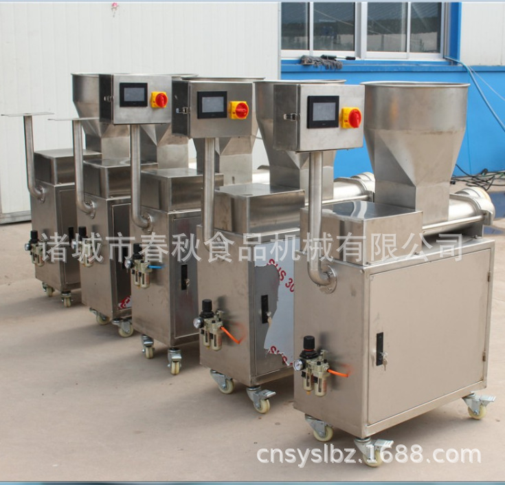 数控下馅机是我公司新开发的一种新产品,可在工作中控制馅的重量,可储存100个不同参数的菜单程序,转换工艺参数时简单、方便,能适应各种不同配方的馅料。
