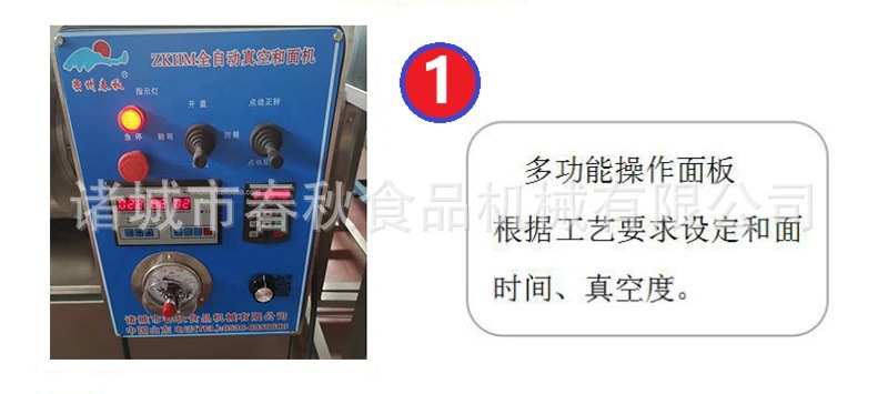 ◇可根据工艺要求设定和面时间、真空度。缸体具有密封性能好,面粉无跑冒现象。