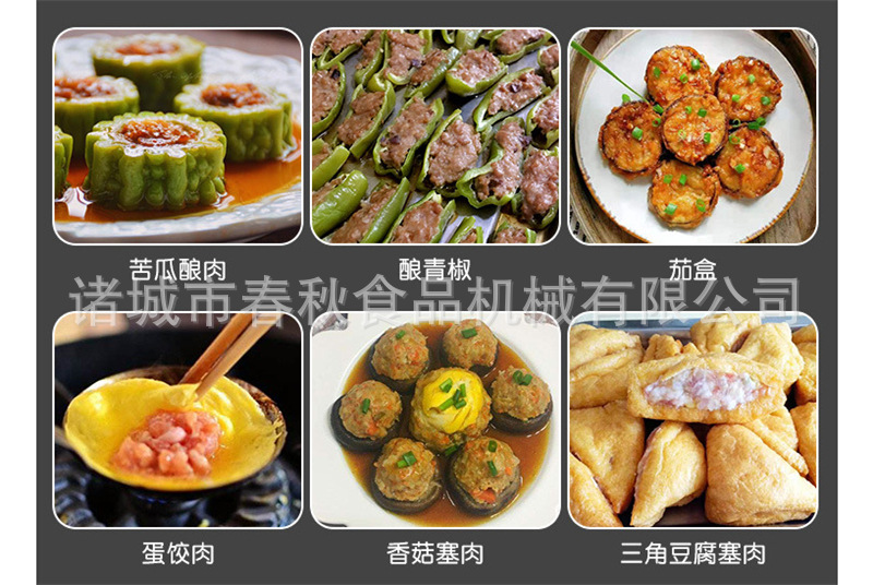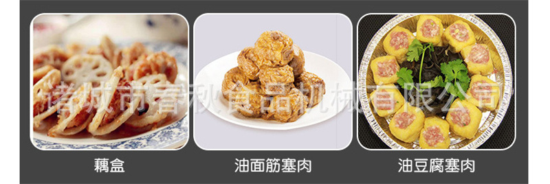 对油豆泡、油面筋、鸡汁福袋进行塞肉灌装 |