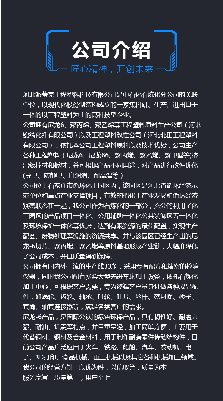 尼龙棒具有抗震、耐油、自润滑、韧性好、抗弯强度高、耐磨性强、尺寸稳定等特点。所以尼龙棒经常会用作加工各种耐磨高强度的零件。尼龙棒广泛的应用于功能性塑料,从而可以代替钢、铁、铜以及其他金属的优良材料,同时尼龙棒也是较为重要的工程塑料。尼龙棒的广泛使用,代替了某些机械设备中的耐磨部件,同时还取代了以铜作为主材料的合金,去取代成为这些设备中的耐磨部件。尼龙棒更适用于制造一些耐磨的零件、化学设备以及化学机零件等。同时尼龙棒更加适合制作一些如涡轮、齿轮、叶轮、曲柄、齿轮、轴承、汽车制造零件、家用电器零件、驱动轴、高压垫圈、套筒等设备。