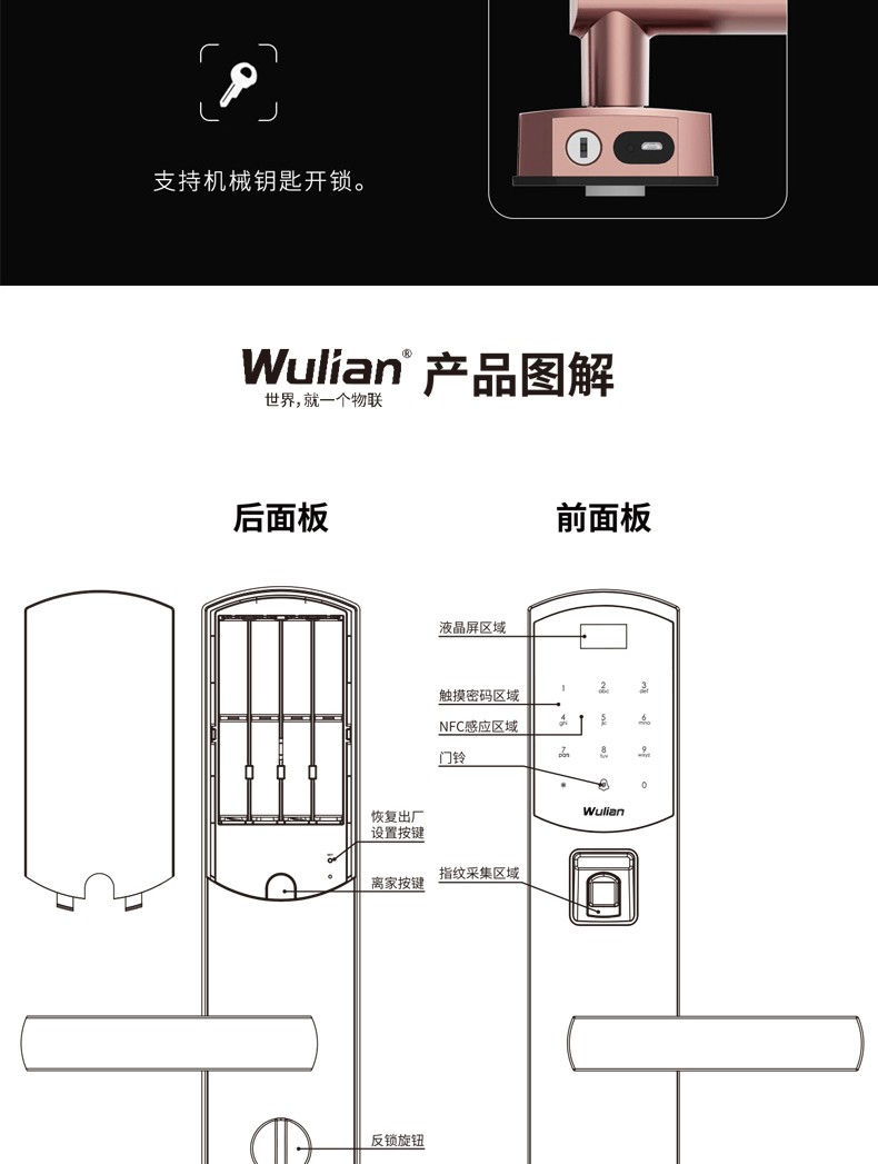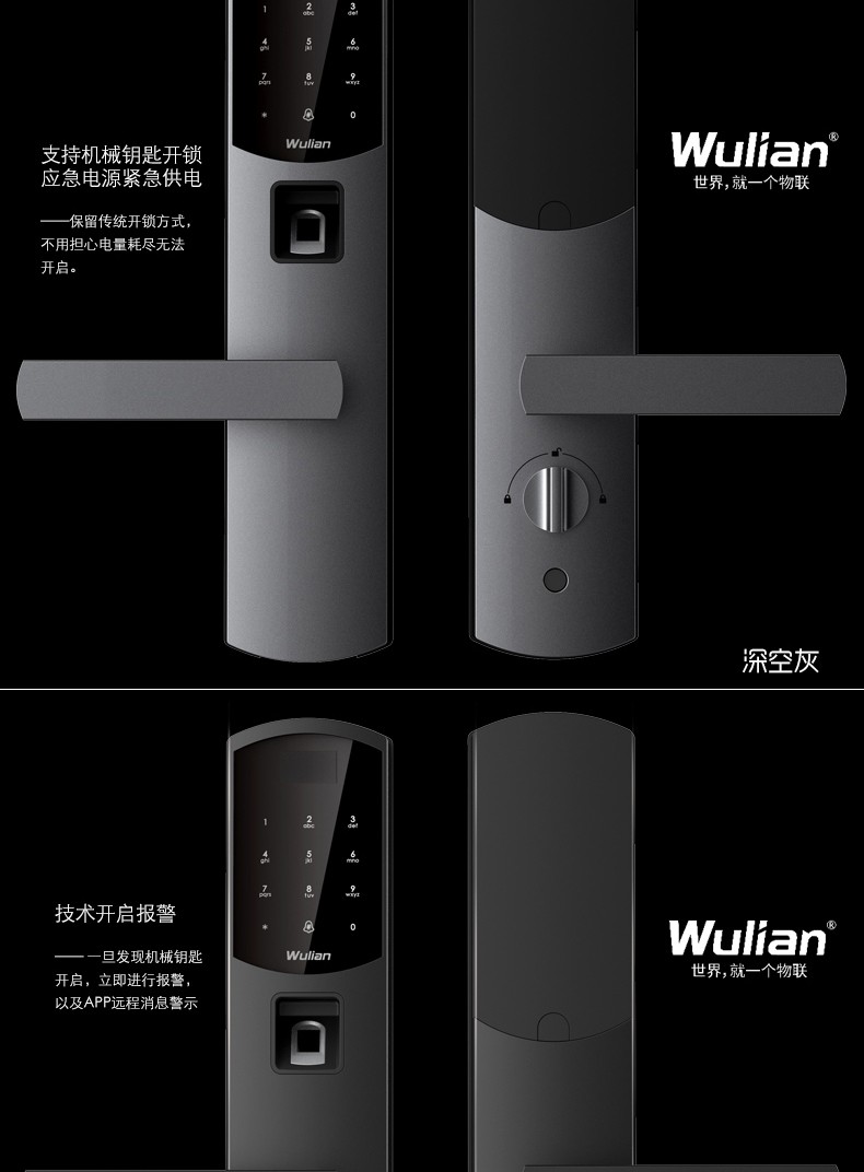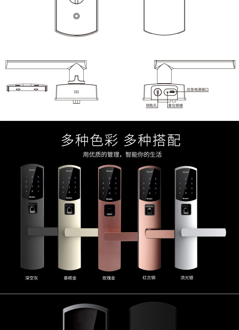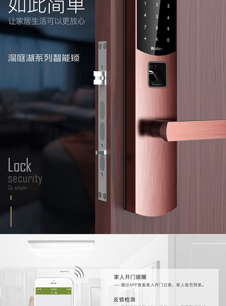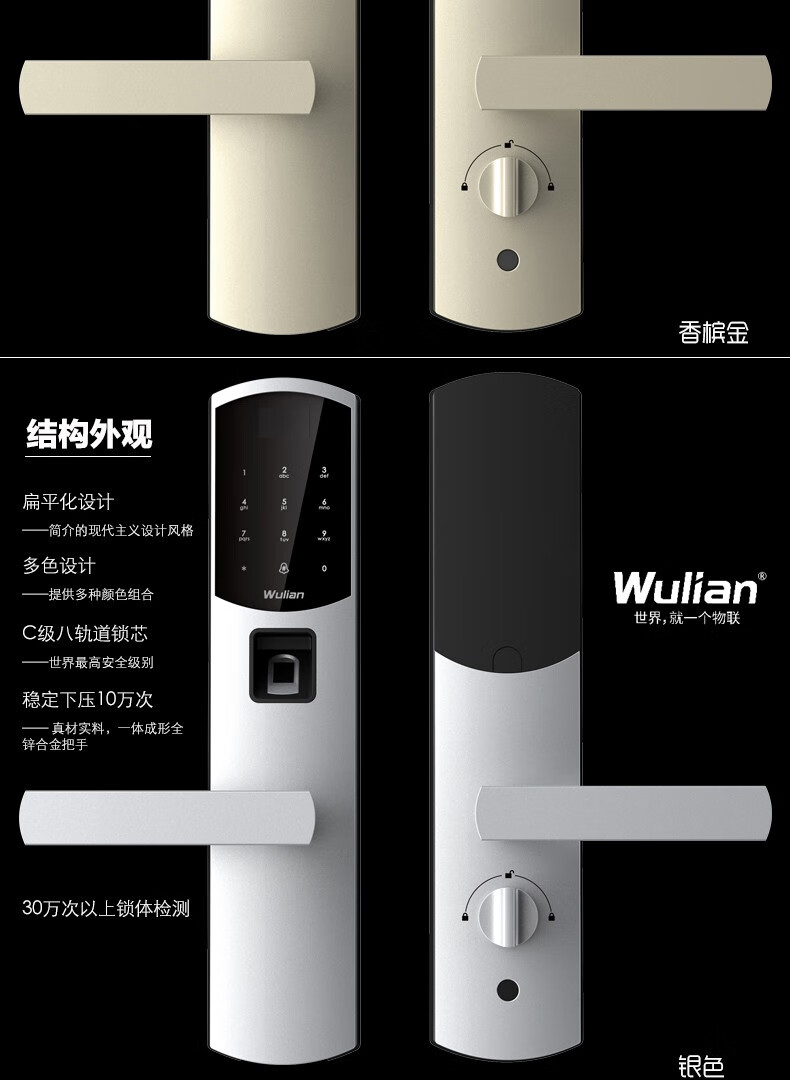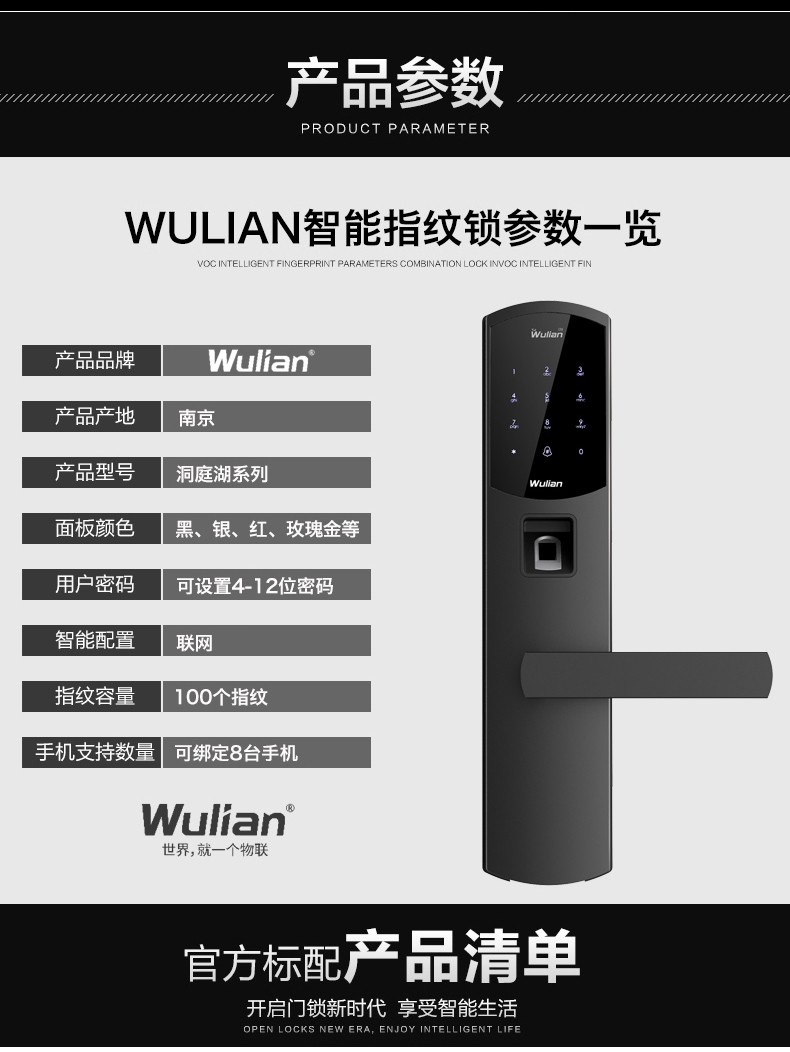 商品名称:Wulian南京物联 洞庭湖系列智能锁 指纹锁 电子锁 APP遥控开门 标准锁体