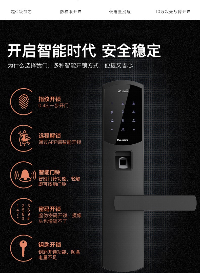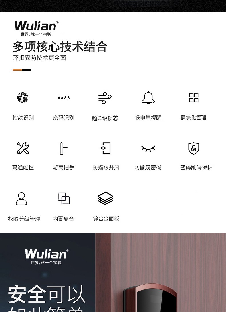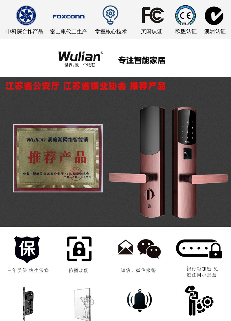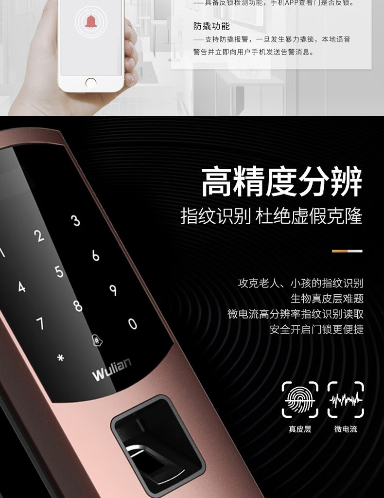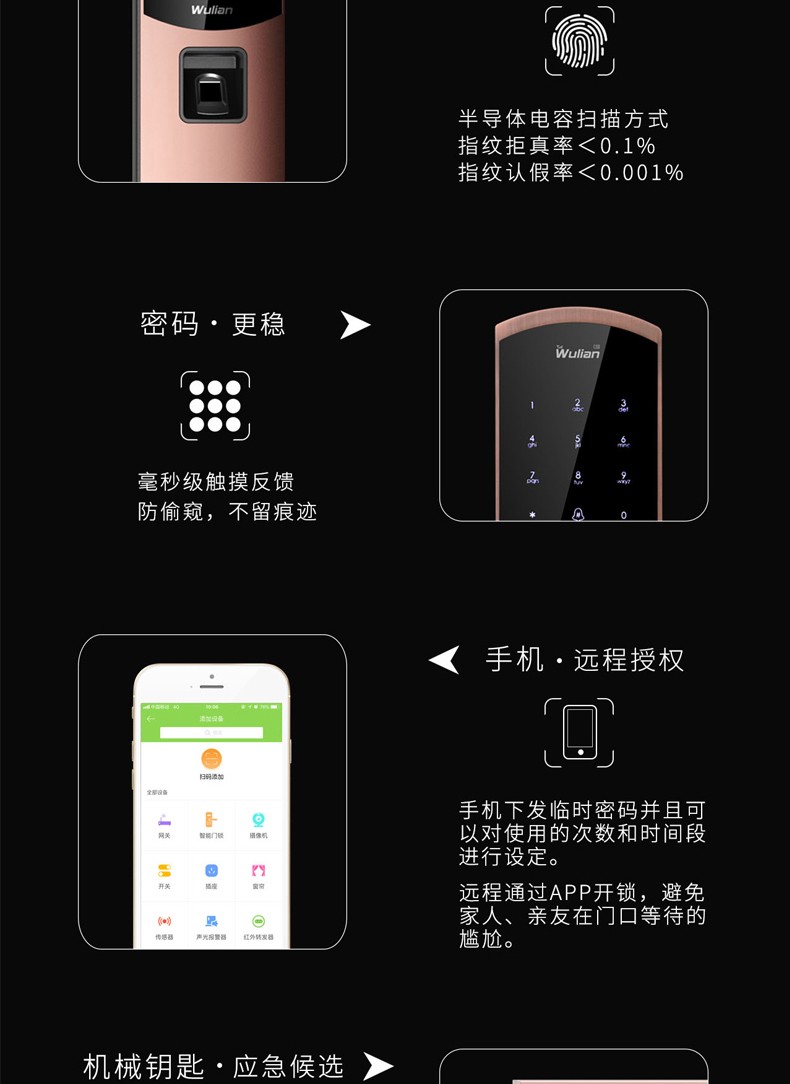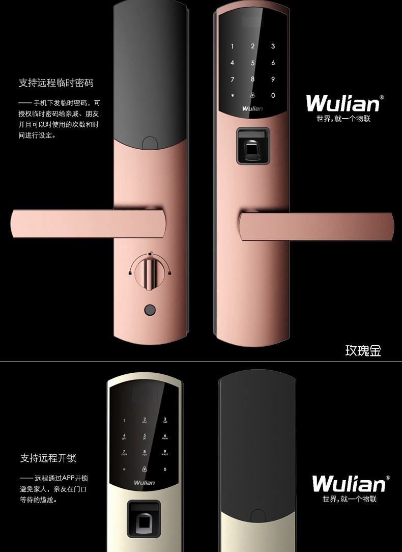 商品名称:Wulian南京物联 洞庭湖系列智能锁 指纹锁 电子锁 APP遥控开门 标准锁体
