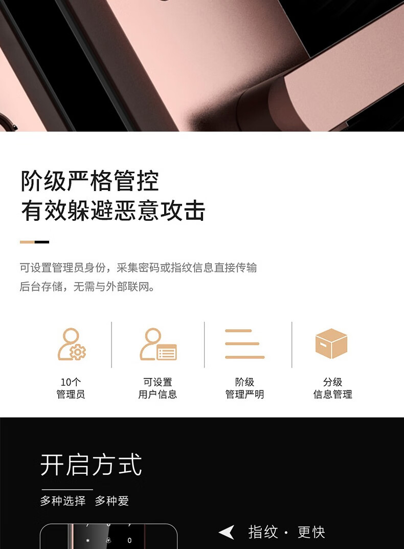 开门方式:指纹,密码,钥匙,APP