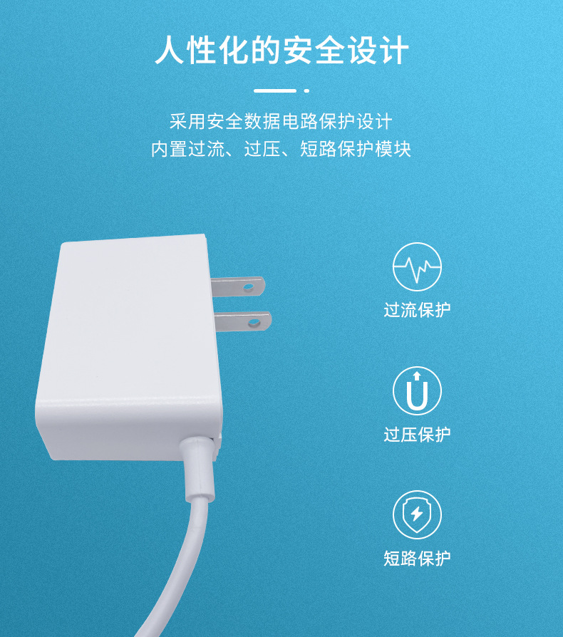 [保 护]:5V2000MA电源适配器具有过电压,过电流,短路保护