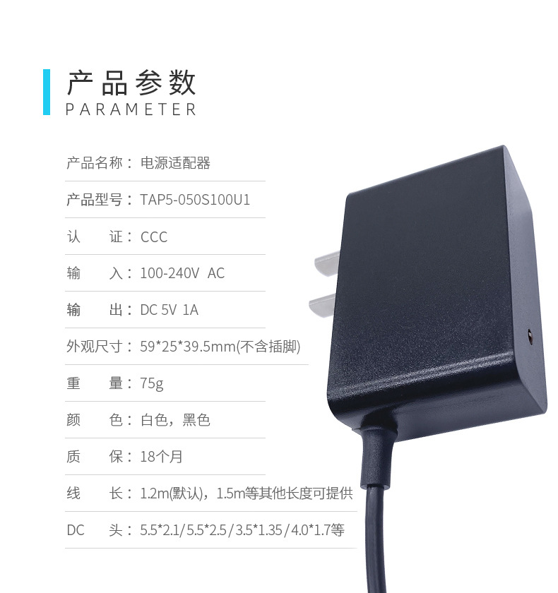 5v1a电源适配器 灯带/路由器/光猫/交换机电源中规DC带线适配器厂