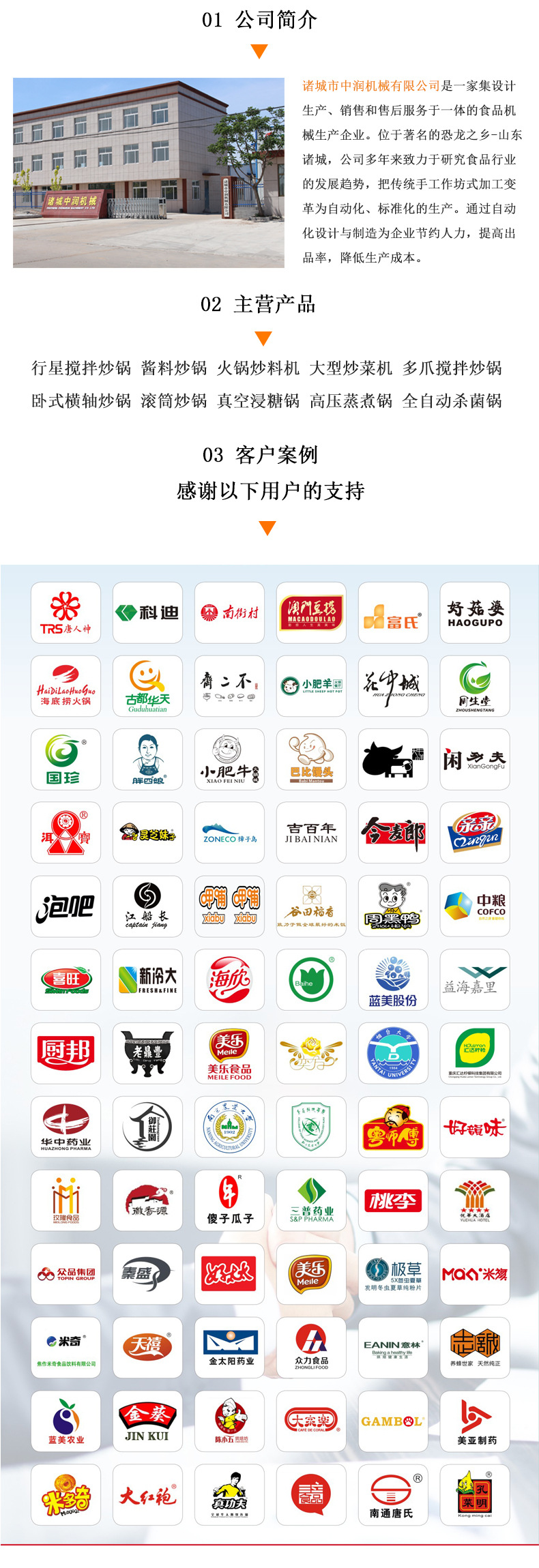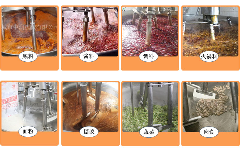各种调味酱料、底料、馅料、果酱、阿胶、食堂炒菜食品加工设备等 |