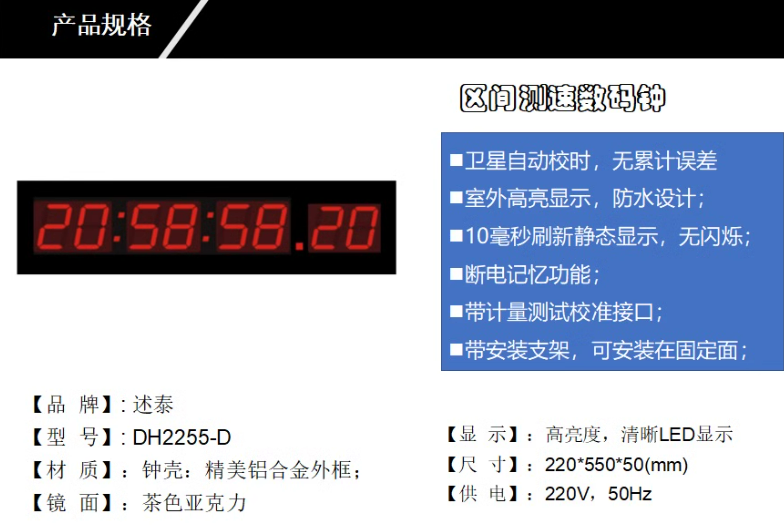 高效同步技术:采用卫星信号接收技术,DH1262CS能够迅速与GPS卫星网络同步,确保时间显示的高度一致性,无论身处何地,都能让您随时掌握准确时间信息,为高速路上的区间测速提供稳定的时间基准。