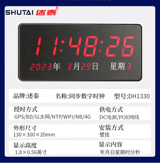 【产品名称】:述泰DH1330万年历卫星同步时钟