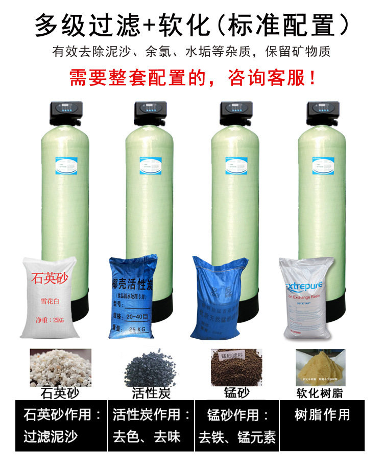 地下水井水除铁锰除氟软化水过滤设备石英砂活性炭玻璃钢罐净水器