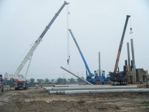 管桩沉桩方法有多种,在我国国内施工过的方法有:锤击法、静压法、震动法、射水法、预钻孔法及中掘法等,而以静压法用得较多。由于柴油锤打桩时震动剧烈、噪音大,为适应市区施工需要,近几年来我国各地开发了大吨位的静力压桩机施压预应力管桩的工艺,静力压桩机又可分为**压式和抱压式,抱压式是桩机的夹板夹紧桩身,依靠持板的摩擦力大于入土阻力的原理工作,静力压桩机较大压桩力可达5000-6000kN,可将直径500、600的预应力管桩压到设计要求的持力层,从而大大推动了预应力管桩的应用和发展。