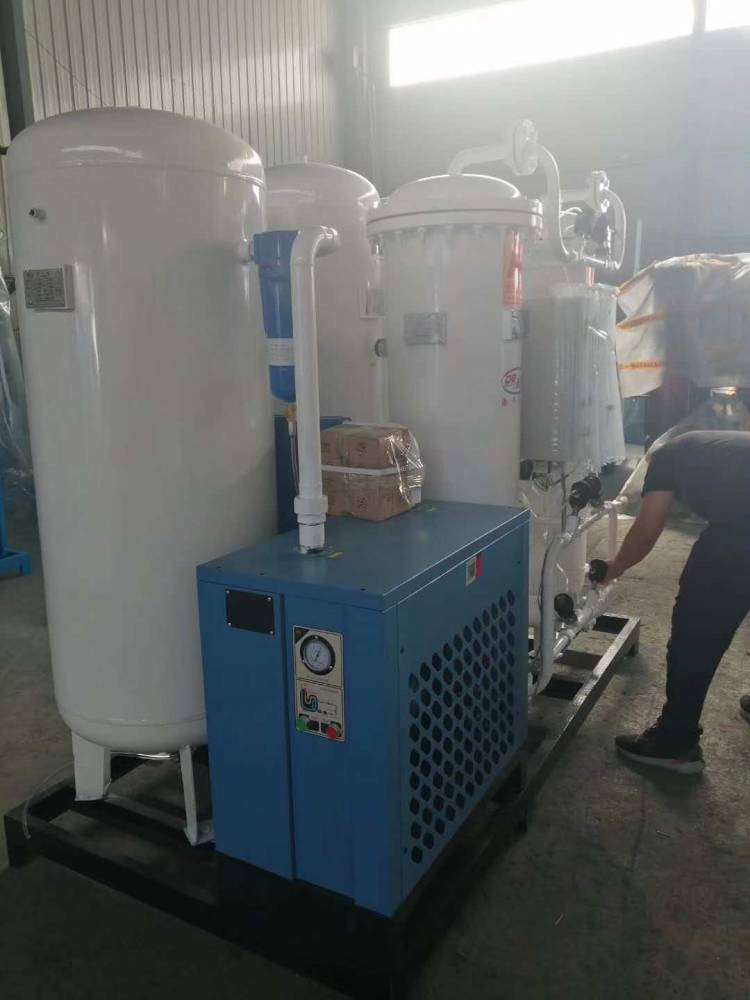 变压吸附制氮机是以碳分子筛为吸附剂,利用加压吸附,降压解吸的原理从空气中吸附和释放氧气,从而分离出氮气的自动化设备。碳分子筛是一种以煤为主要原料,经过研磨、氧化、成型、碳化并经过***孔型处理工艺加工而成的,表面和内部布满微孔的柱形颗粒状吸附剂,呈黑色,碳分子筛的孔径分布特性使其能够实现O2、N2的动力学分离。这样的孔径分布可使不同的气体以不同的速率扩散至分子筛的微孔之中,而不会排斥混合气(空气)中的任何一种气体。碳分子筛对O2、N2的分离作用是基于这两种气体的动力学直径的微小差别,O2分子的动力学直径较小,因而在碳分子筛的微孔中有较快的扩散速率,N2分子的动力学直径较大,因而扩散速率较慢。压缩空气中的水和CO2的扩散同氧相差不大,而氩扩散较慢。***终从吸附塔富集出来的是N2和Ar的混合气。