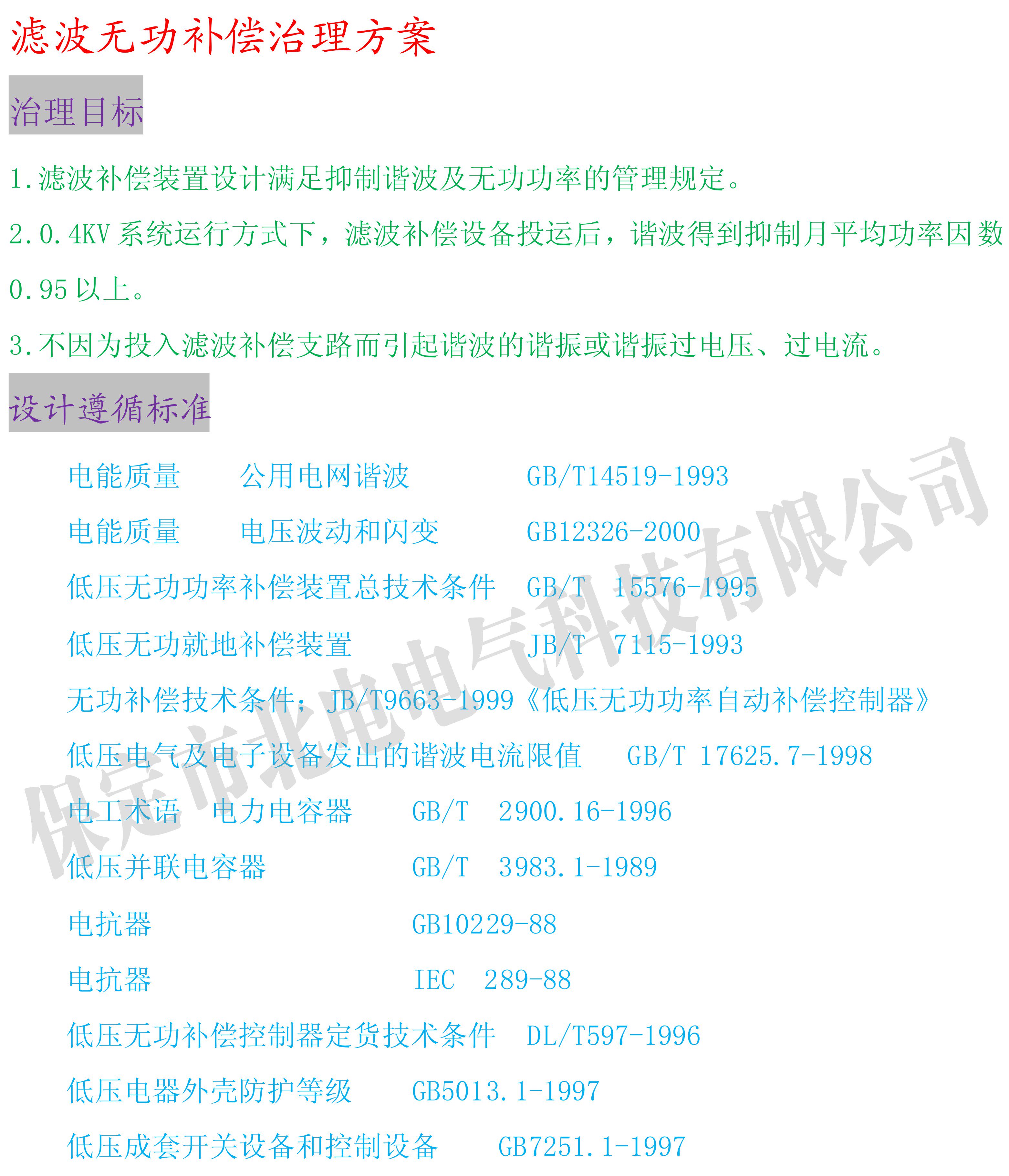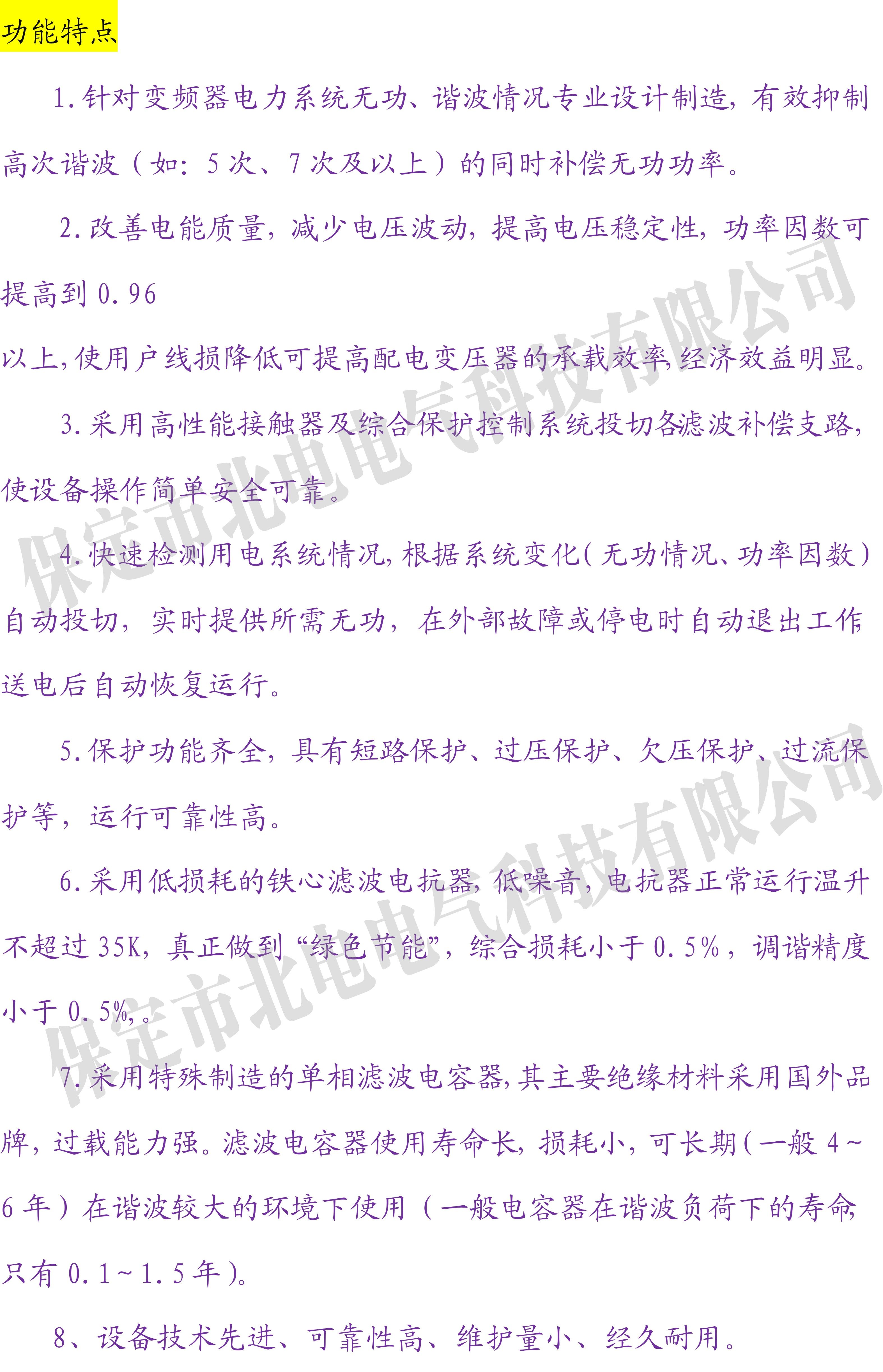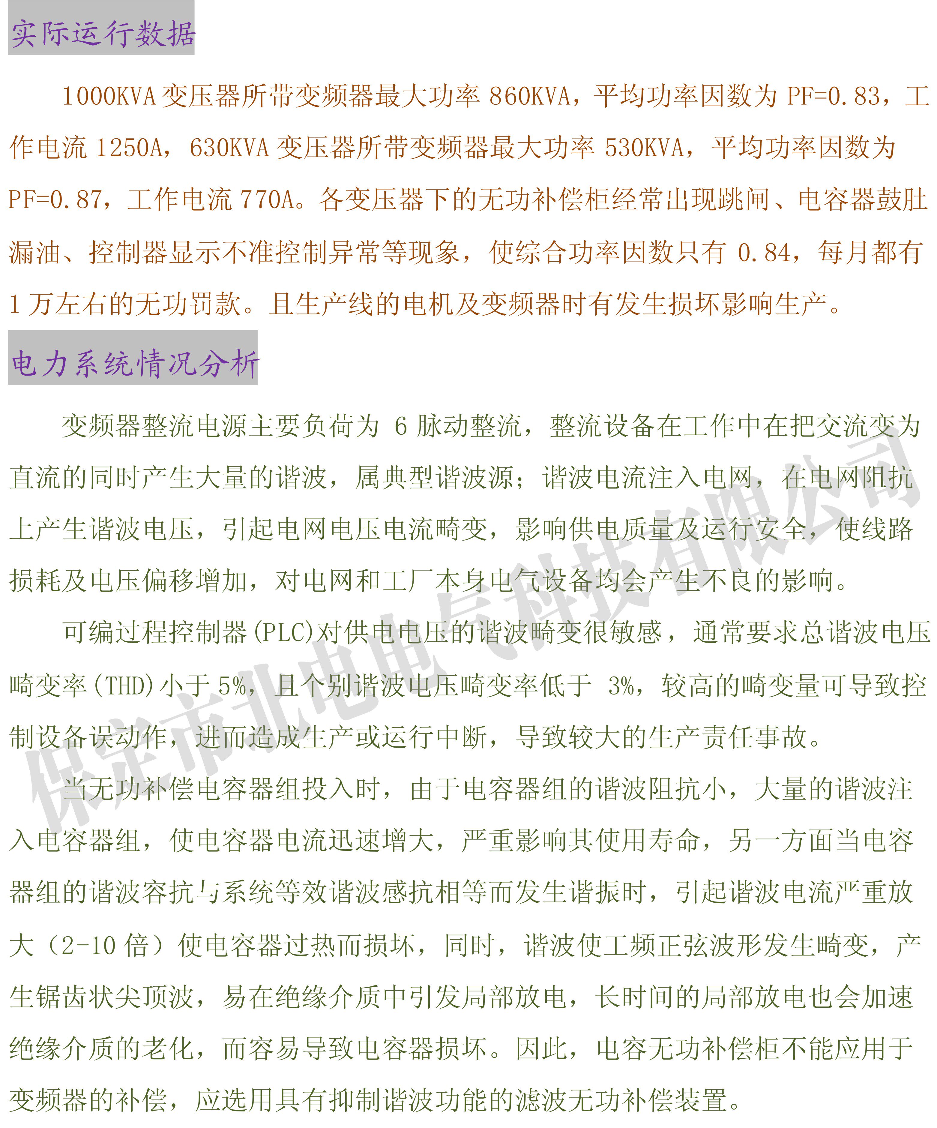 应用领域: 此款电力滤波补偿装置主要适用于用电环境含有谐波,负荷变化频繁且波动大周期时间短,需要谐波补偿无功功率,提高功率因数的用户。
