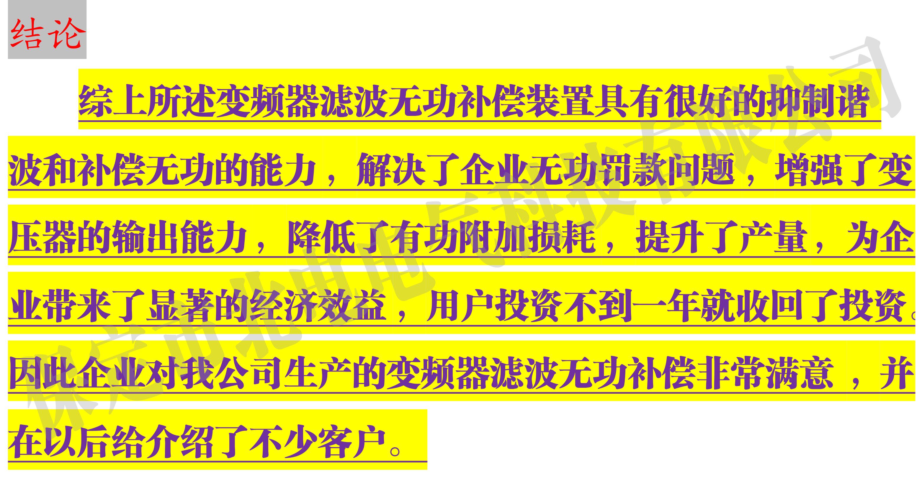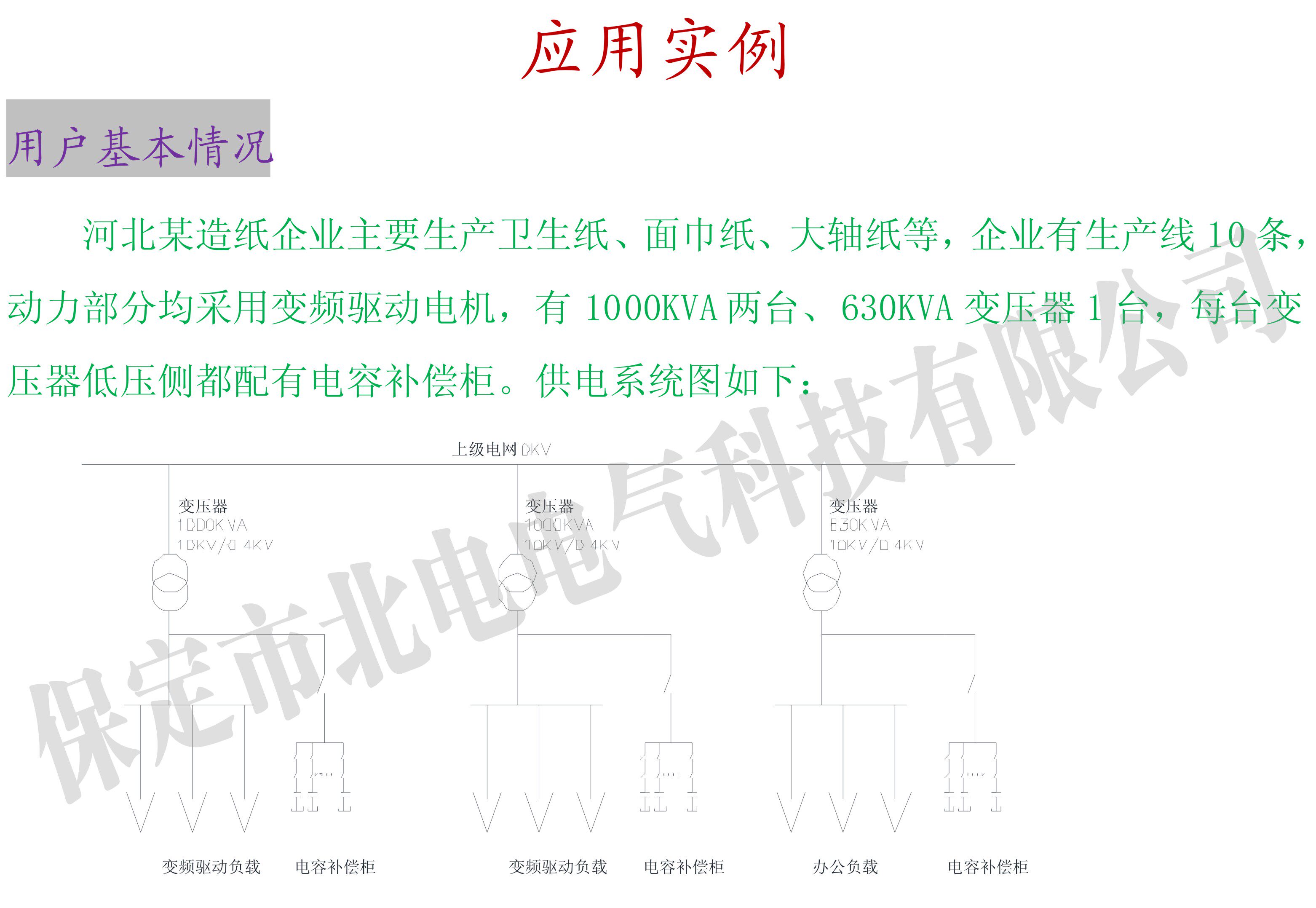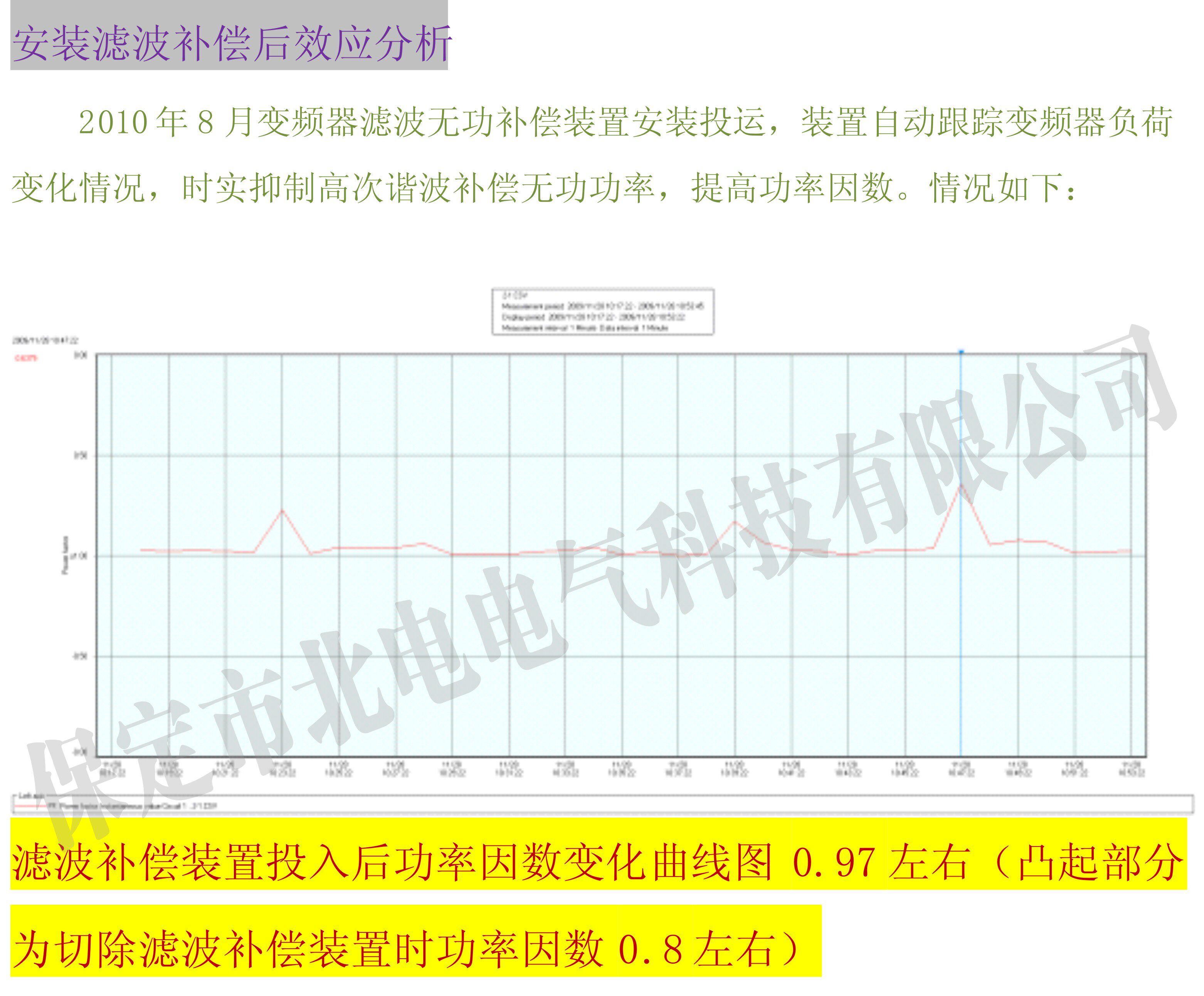应用领域: 此款电力滤波补偿装置主要适用于用电环境含有谐波,负荷变化频繁且波动大周期时间短,需要谐波补偿无功功率,提高功率因数的用户。