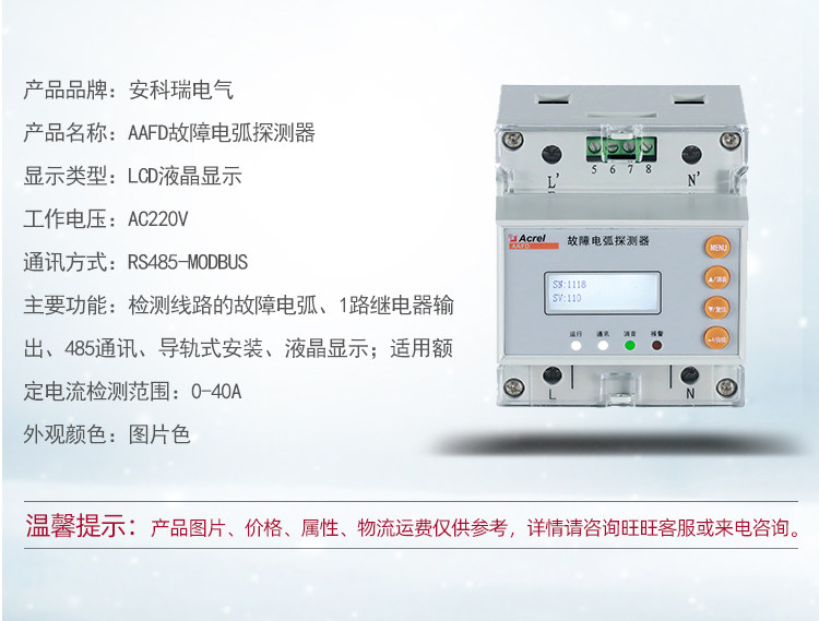 安科瑞AAFD-40 故障电弧探测器 485通讯 导轨式安装 电气安全