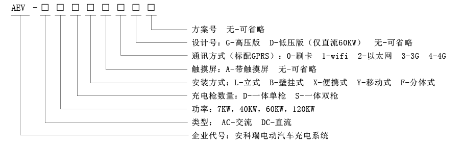 1 产品简介 功能: AEV系列充电桩主要作用就是为小型电动汽车、中小型电动汽车、大型客车、出租车等提供快速充电。