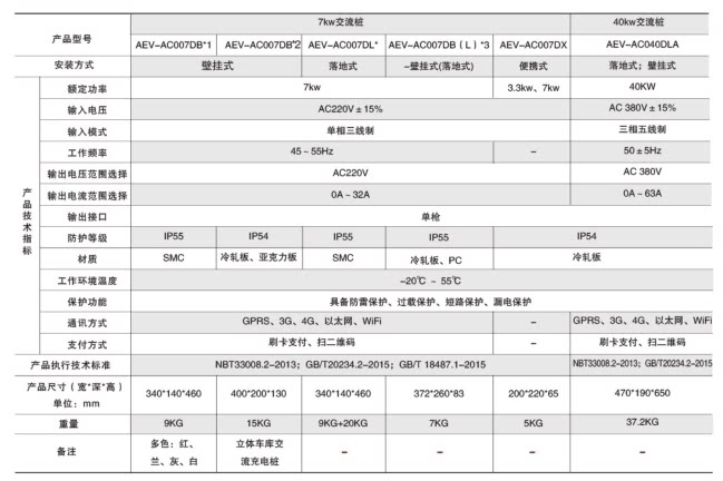 4.4 应用领域: 适用于高速公路服务区、大型电动公交车站、出租汽车维修站等独立运营的场所,为中小型电动汽车、大型客车、出租车等提供快速充电。 5 互联网智能版交流桩系列 5.1 产品图片及型号:
