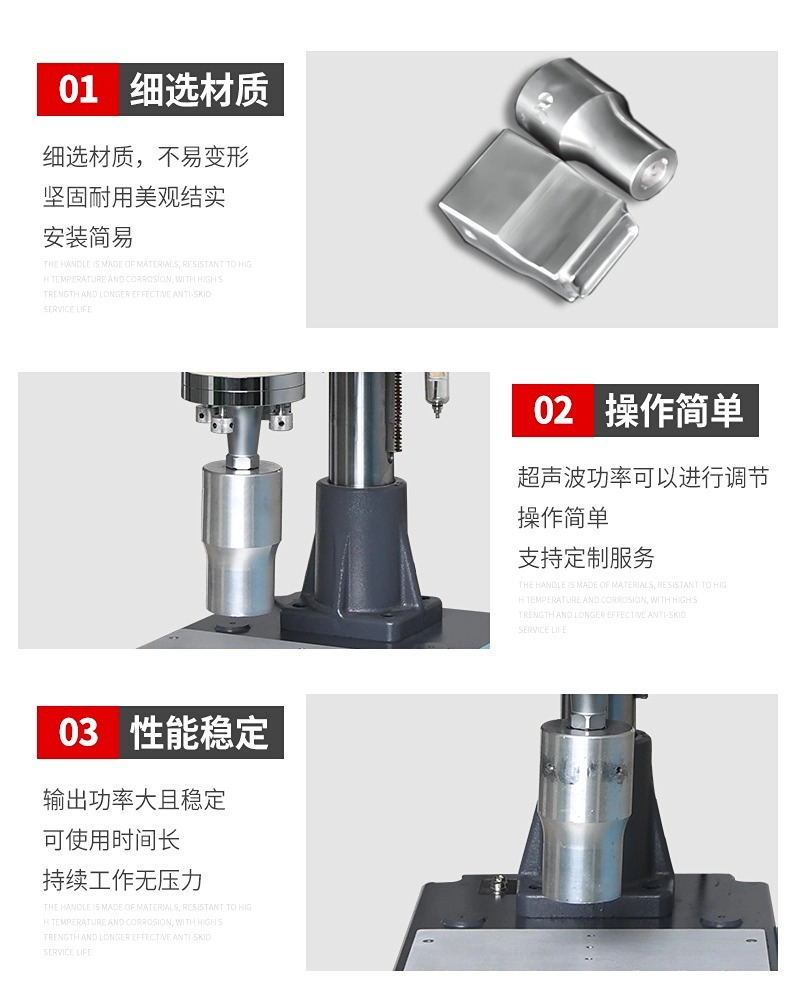 超声波焊接机的主要作用是通过高频振动波传递到两个需焊接的物体表面,在加压的情况下,使两个物体表面相互摩擦而形成分子层之间的熔合,从而达到焊接的目的?。其工作原理是通过振荡电路振荡出高频信号,由换能器转化成机械能(即频率超出人耳听觉阈的高频机械振动能),该能量通过焊头传导到塑料工件上,以每秒几十万次的振动加上压力使塑料工件的接合面剧烈摩擦后熔化,振动停止后维持在工件上的短暂压力使两焊件以分子链接方式凝固为一体?12。