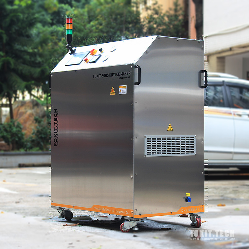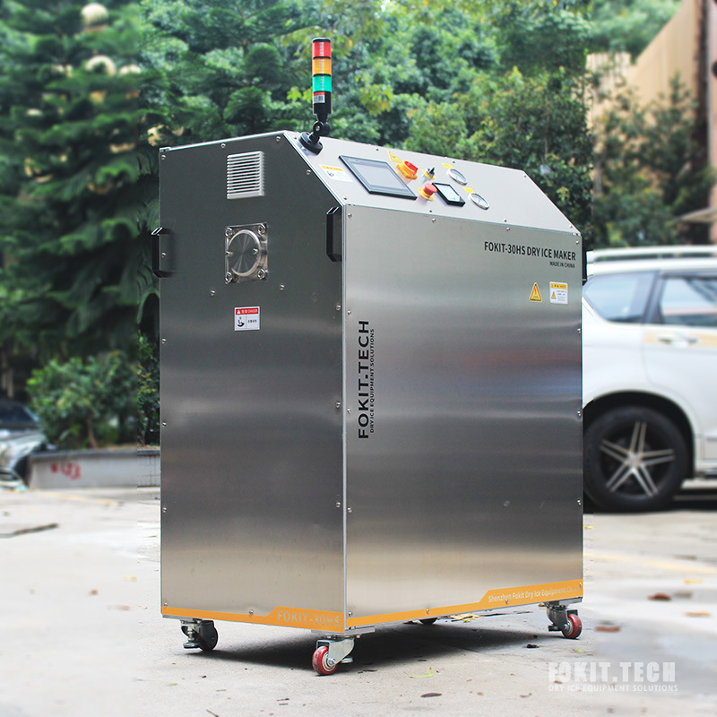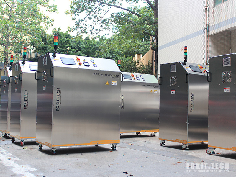 由科洁公司开发生产的FOKIT?-50HS小型干冰生产机,是一款设计紧凑小巧便捷的自动干冰造粒生产机;