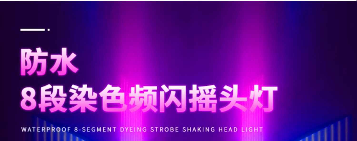 产品效果: 24区灯珠板可独立控制 , 的混色效果, 可调的频闪速度;多彩的频闪效果和均匀的RGB无极混色系统,支持染色、彩虹效果。