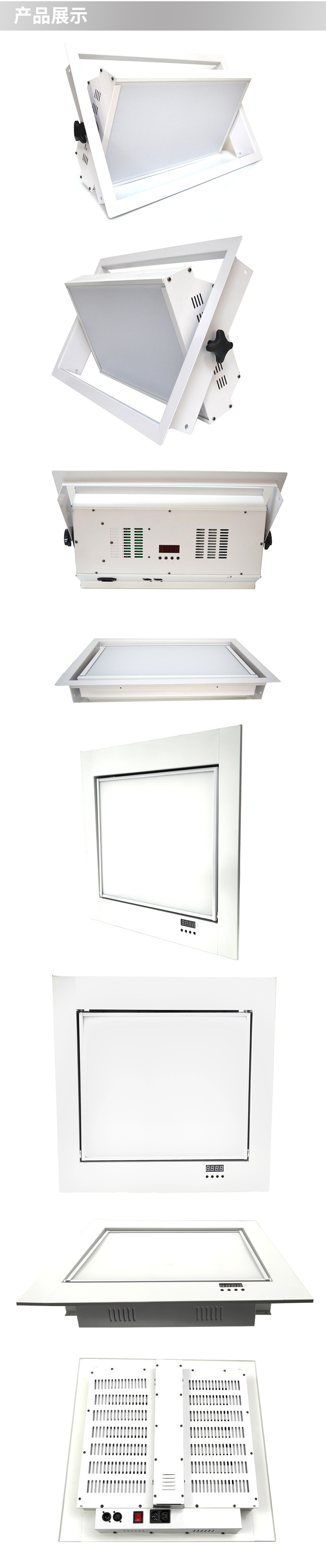 颜色材质:白色正方形灯体,型材铝+钣金
