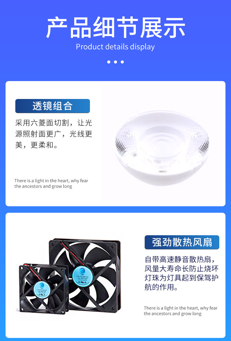 散热系统:采用高效的热导管散热模组,快速地排出热量,大大减少光衰,保证了LED的使用寿命;温度传感检测,智能调整光源功率