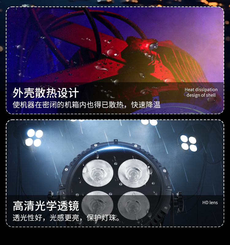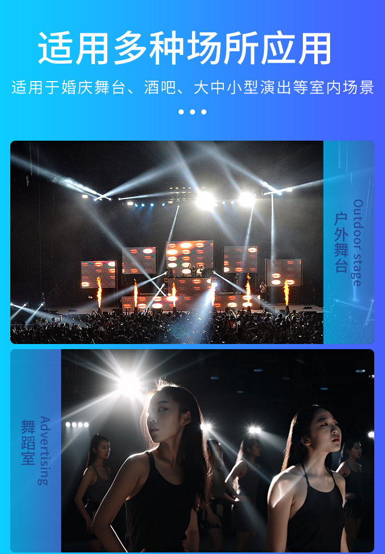 效果配置:全光域调光,65536级调光精度,高光输出;均匀的RGBW混色系统和彩虹效果,具备颜色校正功能,进行颜色补偿,使不同机器展现出来的颜色效果达到一致;